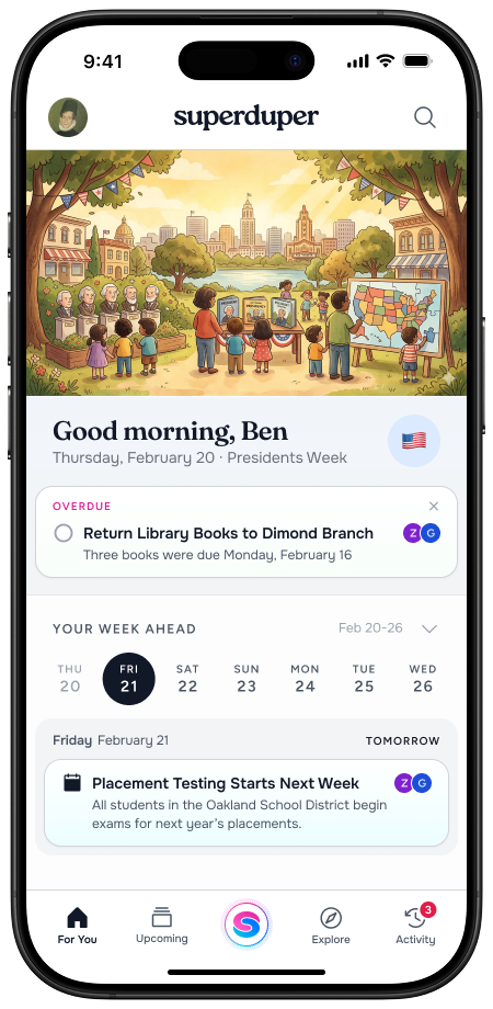 Soccer and piano at the same time? Coach wrote “Monday 3/20” but that’s a Friday? Forecast looks like snow in April? Connect your Google Calendar and SuperDuper will flag when things overlap before you find out the hard way. It catches conflicts, flags inconsistencies, and takes in real world info to make your life more manageable.